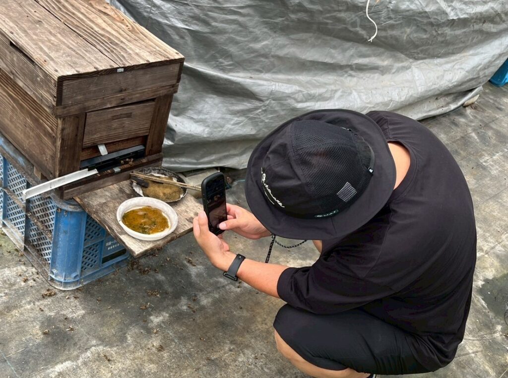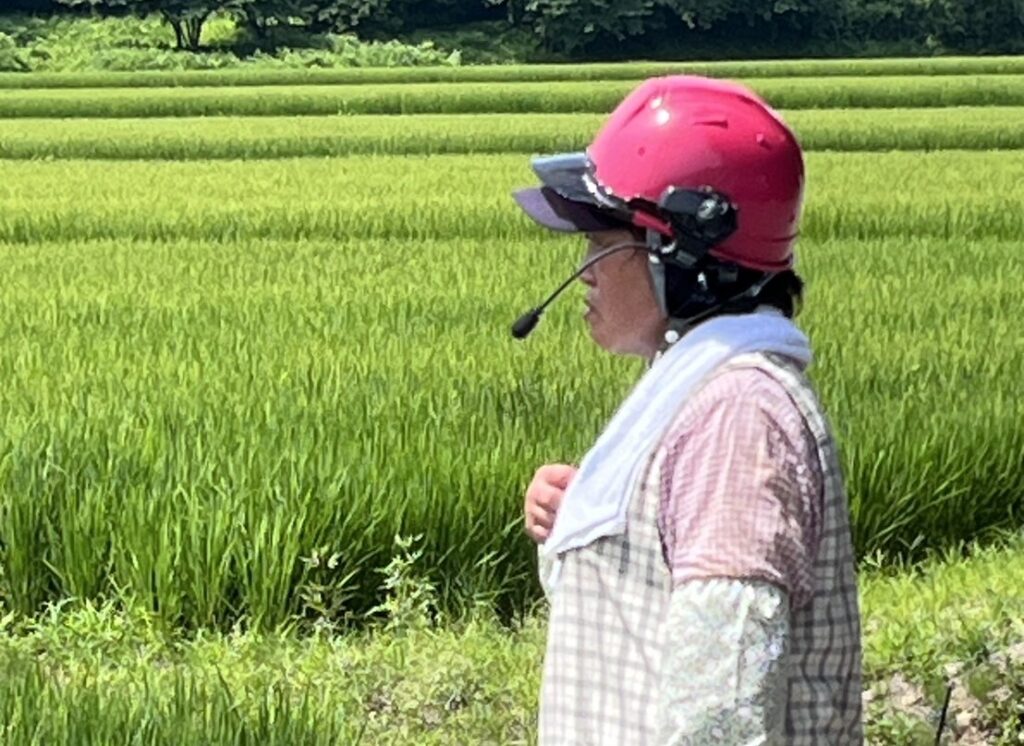 ちょうど田んぼのカメムシ対策の防除のドローンを飛ばしていた髙野さんの凜々しいオペレーター姿も見学させていただきました。