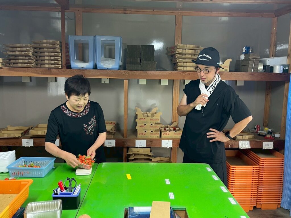 「雷峰」は、際立つ酸味が特徴で、「すずあかね」は冬に出回るいちごとはひと味違う、爽やかでキレのある甘さ、そして名前の通り鈴のようにカワイイらしい見た目が特徴があり、洋菓子店からたくさんの依頼を受けています。「今年は暑すぎて、一気に赤く色づいてしまい、出荷が集中することも。気温が下がってくれば安定した出荷になるんだけど」と幸蔵さん。