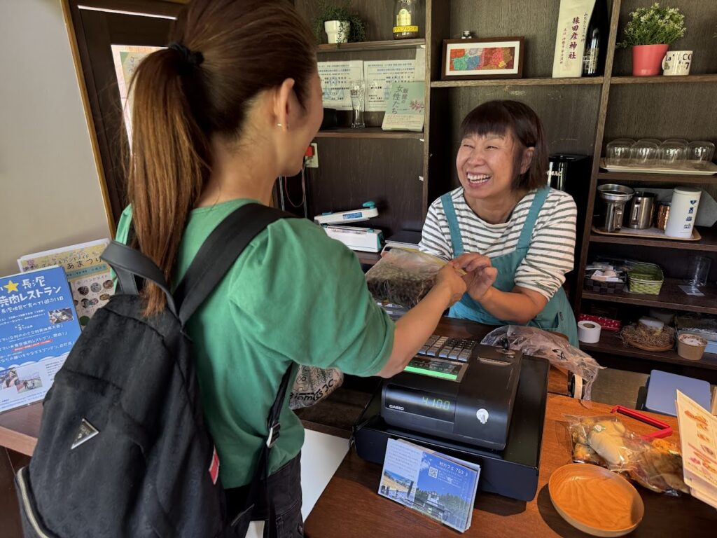 村内のベーグル屋さん「村カフェ753」で人気の「ナツハゼベーグル」を求めて立ち寄り、飯舘村のナツハゼを加工するにあたってどんな特徴があるのか?収穫時期のタイミングによって酸味の違いがあることなど教えていただきました。