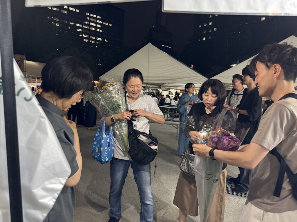 初日にご用意した、いいたて村の道の駅までい館からの直送”いいたてのお花たち”。お花好きな方々に選んでいただき、初日のうちに完売。