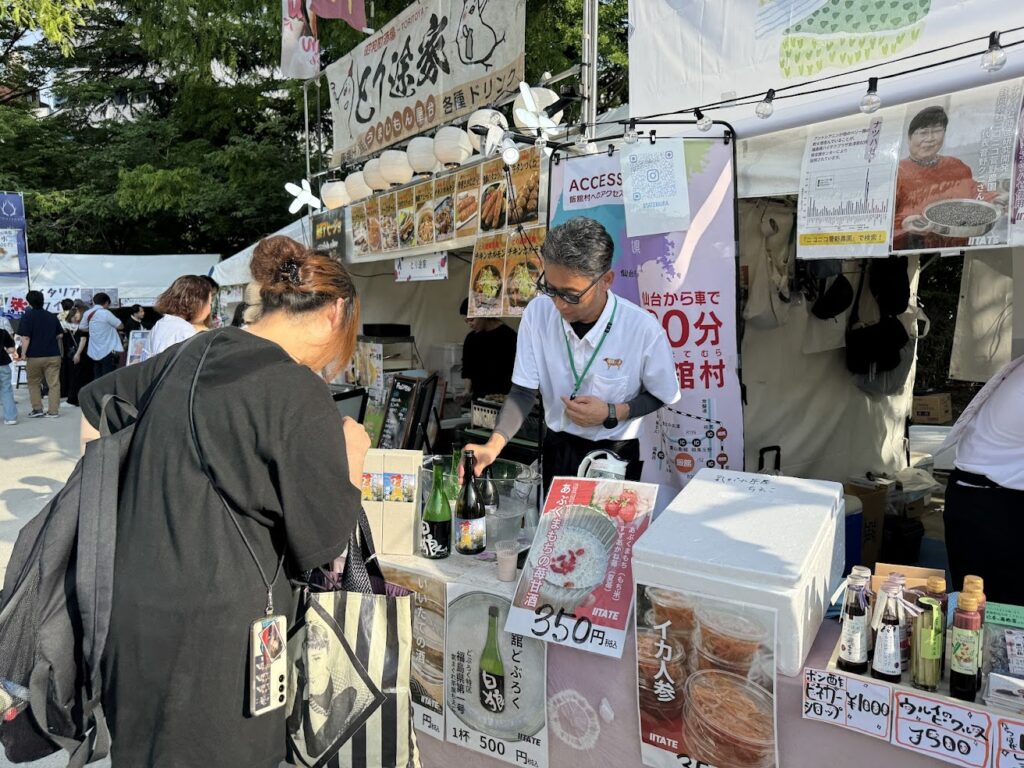 杉岡誠村長が会場に駆けつけ、村の美味しい産品を実食してその魅力を発信いただきました。