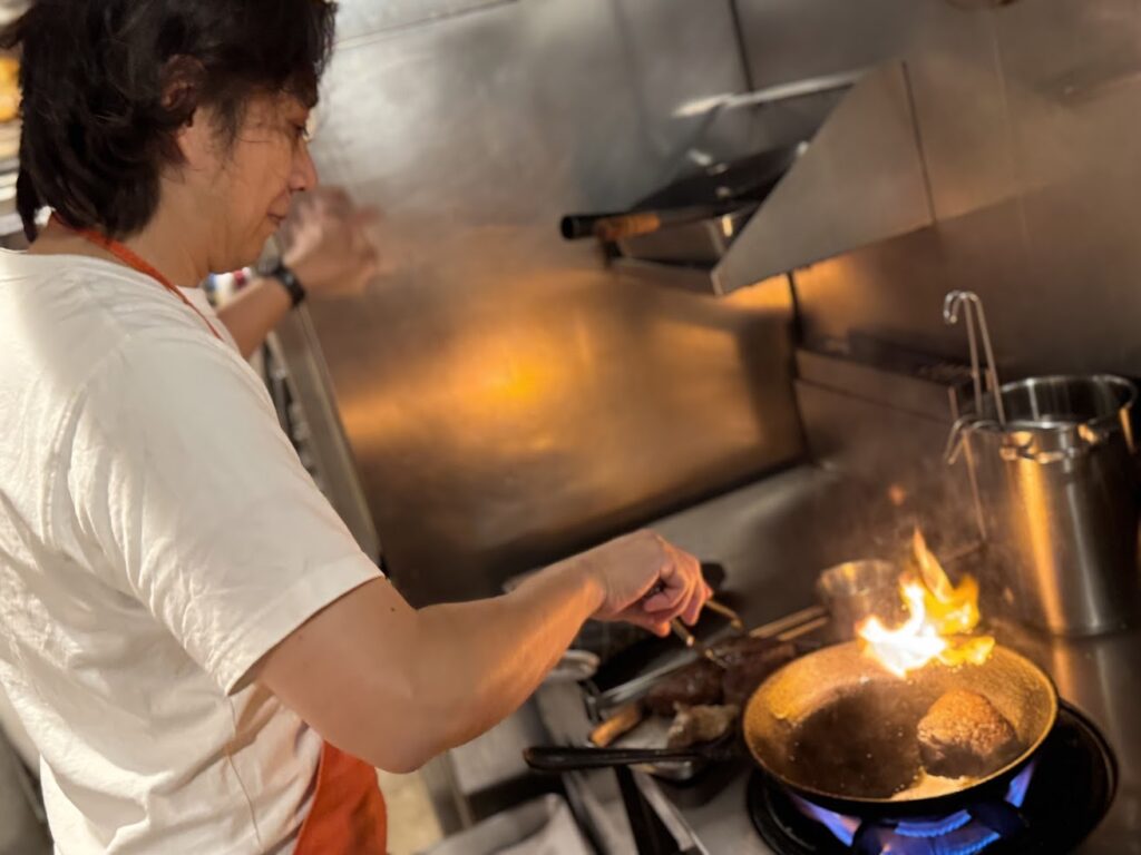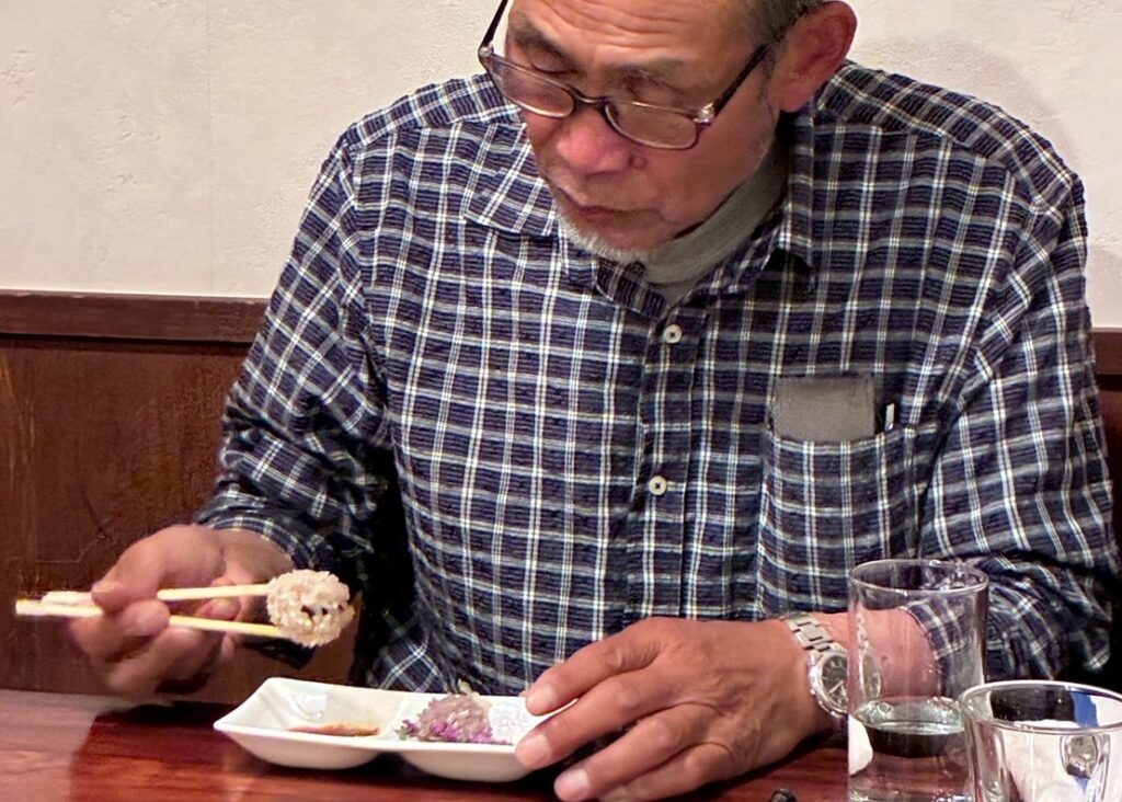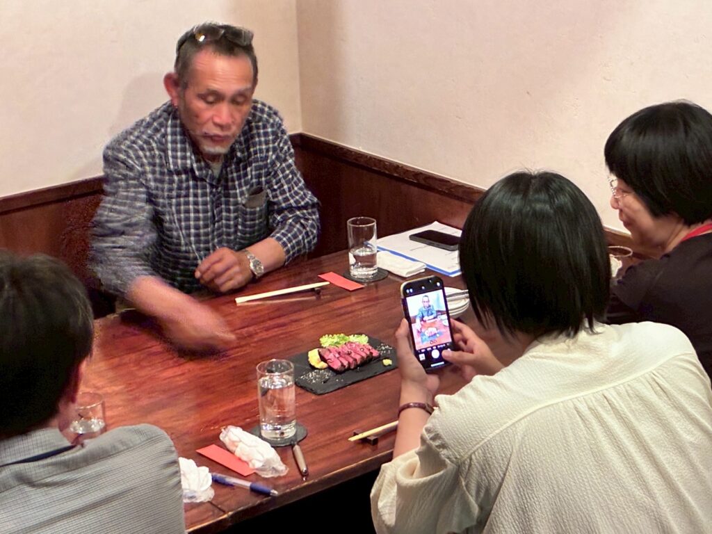 店主 大久保さんと肉のゆーとぴあ 山田さん、「今日のラムシンの情報、芯温を何度にした状態にしたか?」など、話をしていました。今回の試食検討会では、すでに定番メニューとして提供している飯舘産黒毛和牛のステーキを改めて試食し、今、そしてこれからの時代に合った“飯舘牛”のブランド化の方向性についても情報共有する機会になりました。