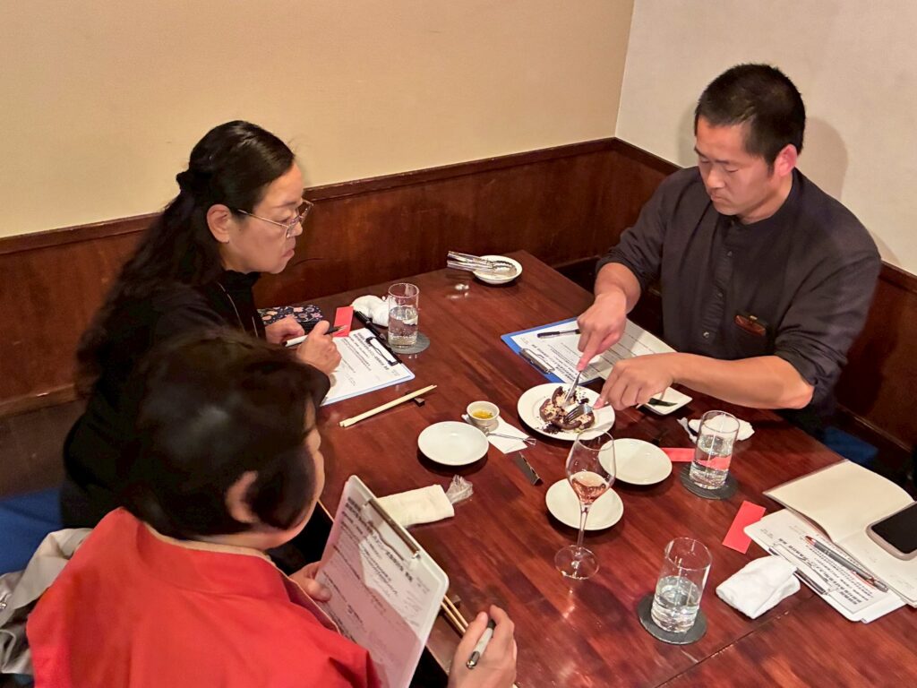 このあとご試食いただく山田さんのエイジングビーフの肉の旨味をしっかり受け止めるフルボディの赤を選びました。熟成肉とカベルネソーヴィヨンの相性がとても良いです。あいにく、髙野さんご夫妻のご参加ができなかったのですが、かわりに皆さんが試食チェックを行いました。