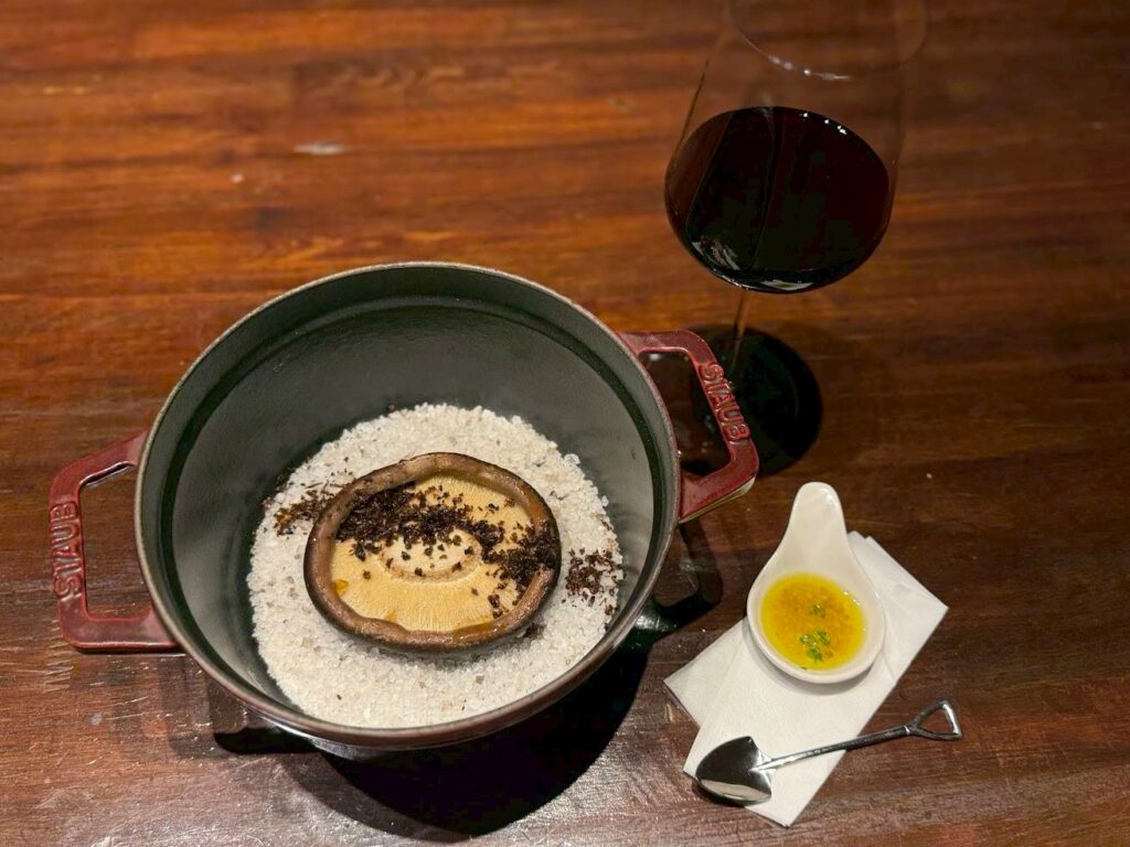 肉厚だから歯ごたえがあり、噛みしめると鼻から香りが抜けていき、赤ワインによく合いました。ぜひ、お料理を提供する際には、「土」にみたてた椎茸の下ごしらえの時間をメニューに記載して紹介していただきたい。