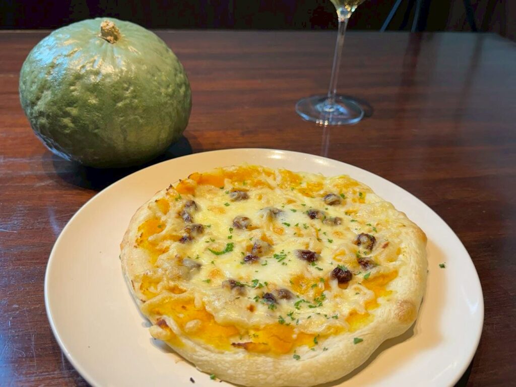 ●かぼちゃのデザートピザは、納得の美味しさ。雪っ娘かぼちゃそのものの甘さがいかされておりとても
