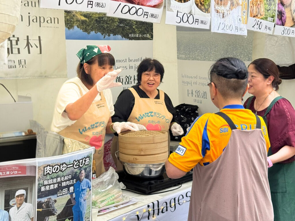 目玉のメニューは、村カフェ753さん(写真左から3番目)と前田明神そば生産組合さん(写真右から3番目)が連携して開発した、スイーツ"いいたて蕎麦おやき”