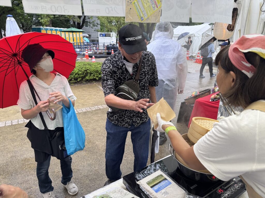 甘いもの好きのための、ミルキーなホワイトチョコ具材肌寒い気温だったこともあり、蒸籠で温めたスイーツ”いいたて蕎麦おやき”は次々に売れて、ご用意した60個、完売に!