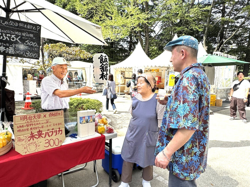 生産者のお二人が村外イベントでお揃いになるのは貴重なこと。「生産者さんと直接お話ができるのは贅沢!え?本当につくられているご本人なんですか??」と質問攻めにあう千榮子さんに、宗夫さんが「本当に、どぶろくをつくっているご本人ですよ!」とご紹介。(写真左)