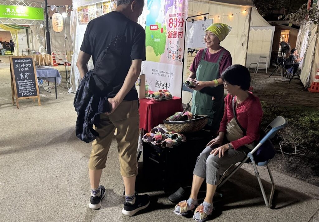 手に取ったお客様は、自分の1足に悩んで悩んで決めていました。中には、プレゼントにしようとまとめて購入された方も!★飯舘サンダルは、「氣まぐれ茶屋ちえこ」の店内でのみ常設販売しており、イベント時に特別にご紹介しております。