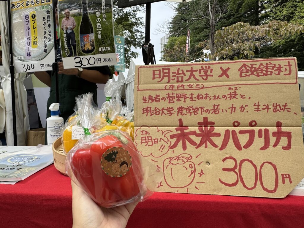 お酒の販売だけでなく、明治大学農学部と連携し、「パプリカ」の生産を通して、新しい農業スタイルの研究に取組んでいます。
