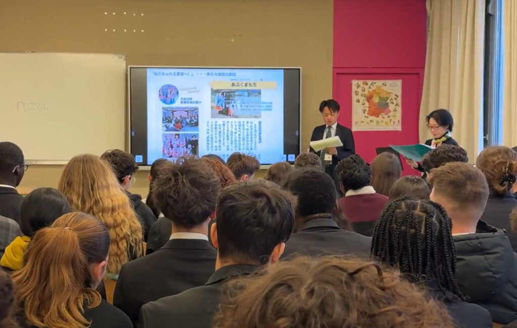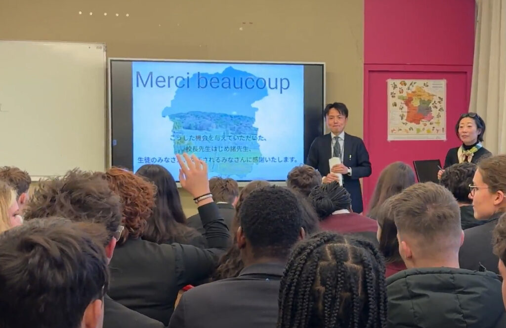2025年12月3日、公立ギヨーム・ティレル校で、セミナー「東日本大震災における飯舘村への影響と復興の道筋、飯舘村の“今”」を開催し、フランスの学生さんと教員合わせて51名にご参加いただきました。