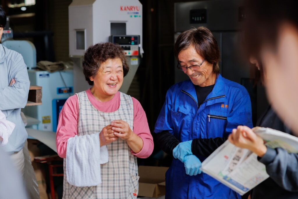 までい工房美彩恋人 渡邊とみ子さん、椎茸生産者の髙橋笑子さん。