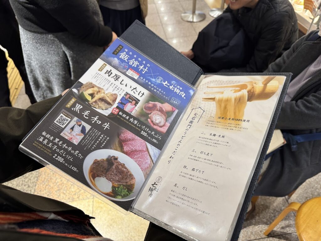 七右衛門さんは、天婦羅が武器。1日に10食以上ご注文いただくこともあり、「大きい、やわらかい」という感想や、黒毛和牛を使用したうどんは、高単価商品としてインバウンドのお客様中心にご注文いただ他、クリスマスにご来店のカップルのお客様の特別な日の需要があったと、教えてくださいました。