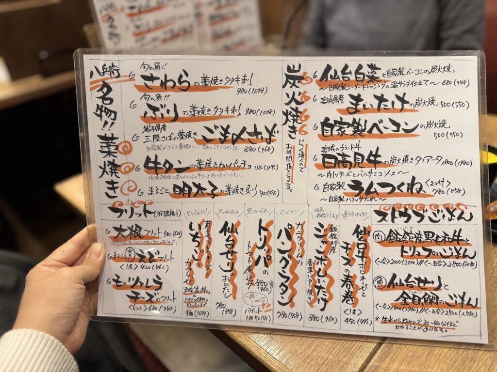 八兵衛さんの手描きのメニューに組み込まれた!といううれしさ。それに、仙台牛のメニューのお隣に、飯舘産黒毛和牛と書かれているうれしさ!