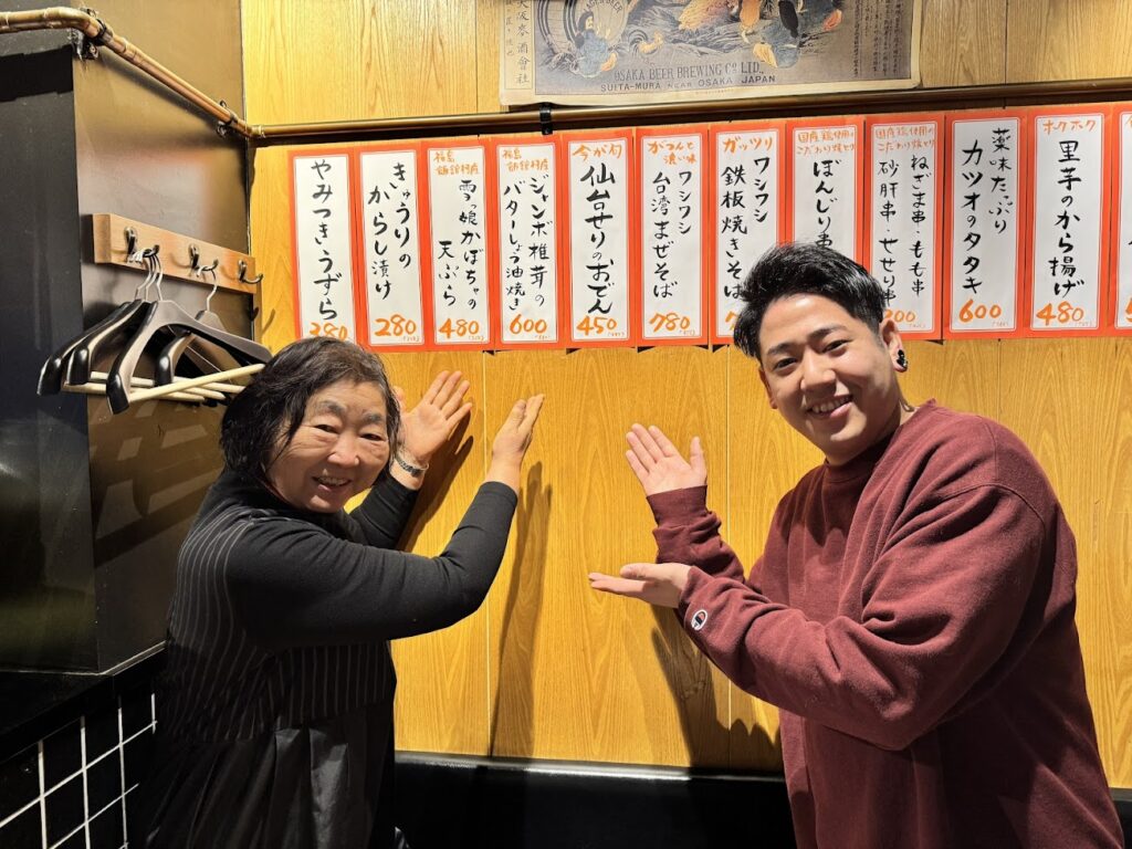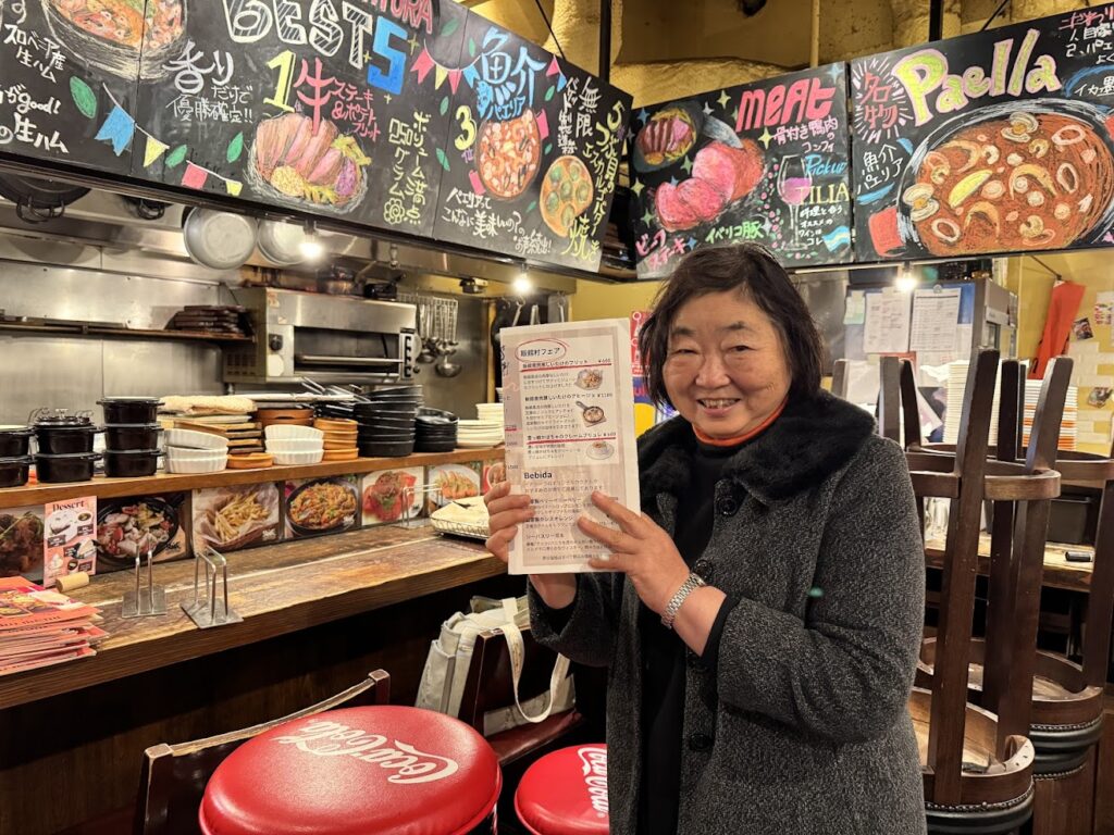 ★上記写真は、フェア開催中、菌床椎茸の生産者髙野笑子さん(写真右)と収穫をお手伝いしているご近所のさつきさん(写真左)による店舗視察「うどん酒場七右衛門」で。