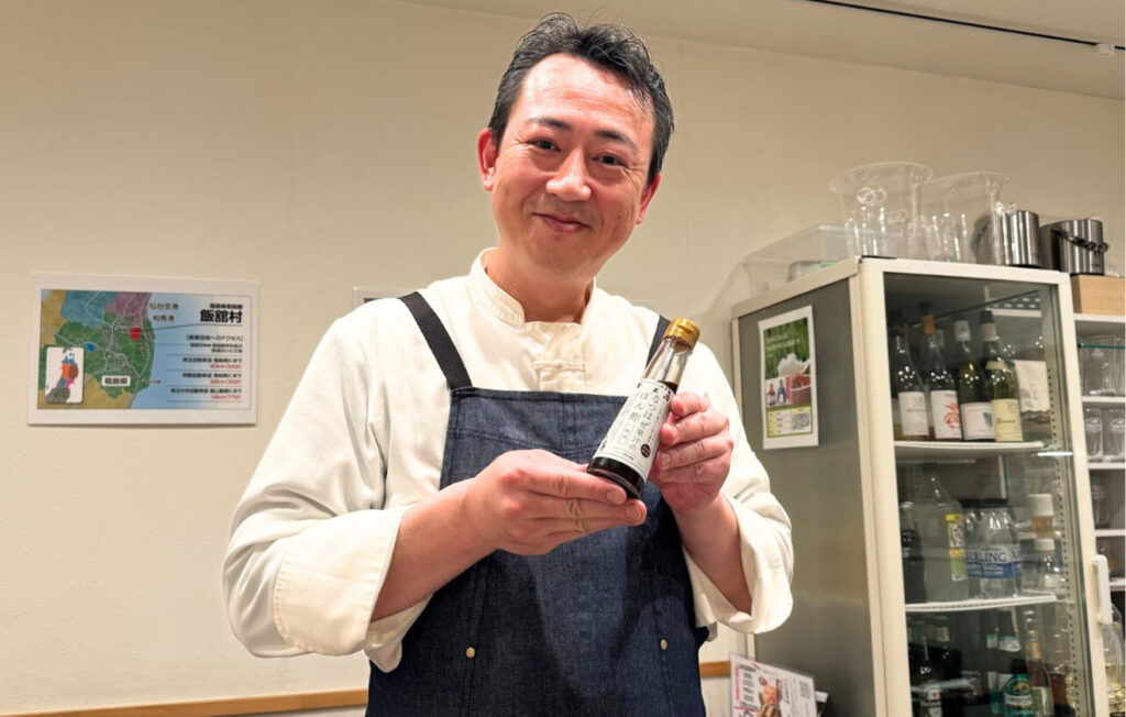 菊池シェフは、あぶくまもちの生産圃場を訪問したこともあって、一層丁寧にちまきの仕込みを行ったそうです。味変に、「なつはぜ果汁のぽん酢 熟成」がおすすめ