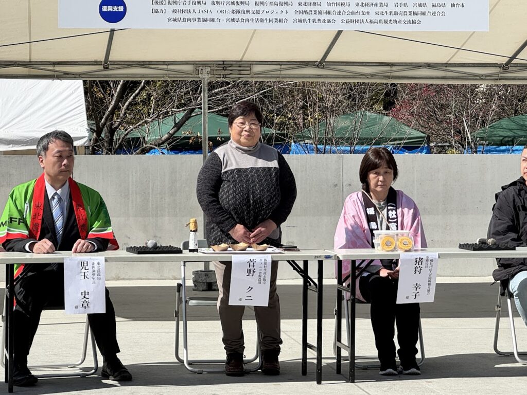 合同会社ニコニコ菅野農園 菅野クニさんが講演に登壇し、東日本大震災前・当時・そして今の状況をわかりやすい言葉で、来場者に説明しました。
