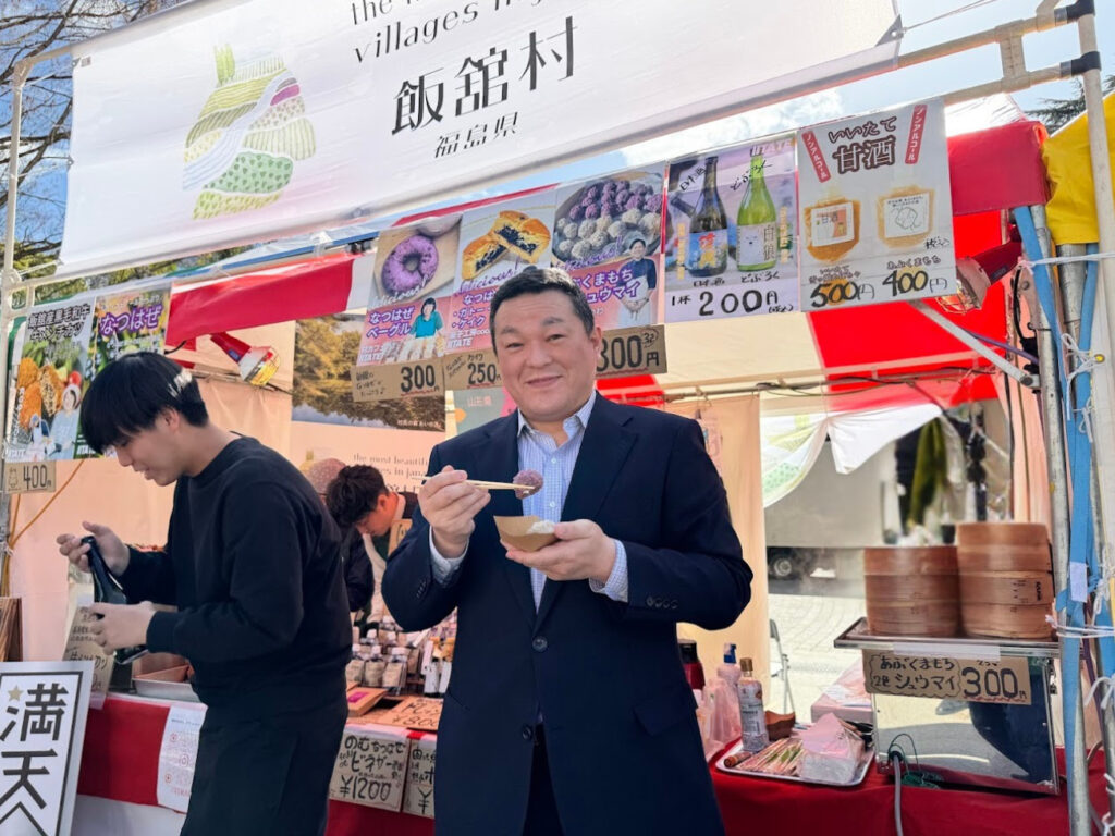 杉岡誠村長、あぶくまもちシュマイ実食