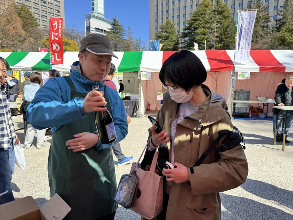 この日は、日本酒好きの女性からのお求めが多く、酒ラベルを撮影する姿がたびたび見られました。