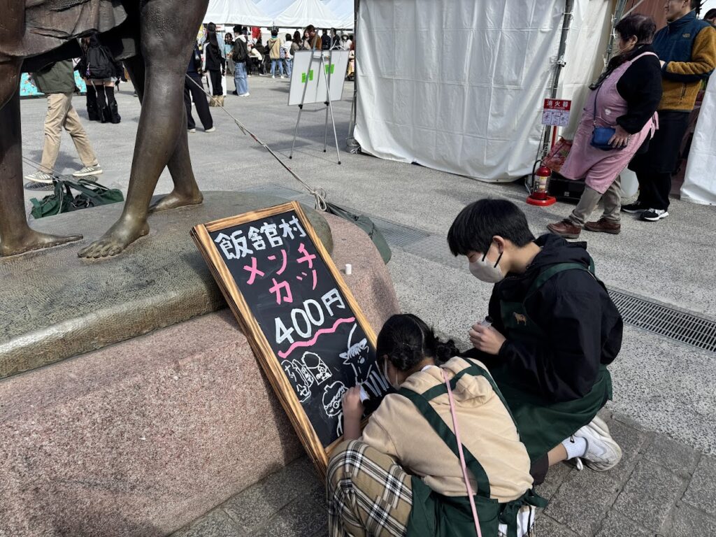 肉のゆーとぴあさん、この日はご家族で参加し、看板描きは、子ども達が担当し、目立つところに設置!