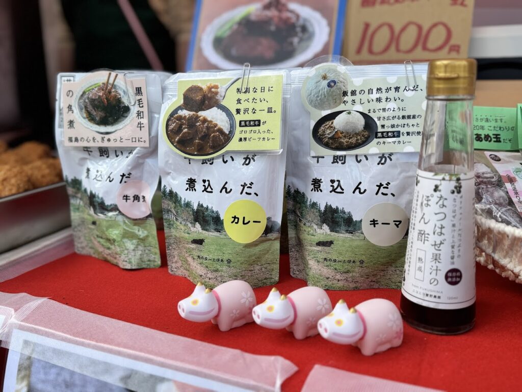 その効果があって、2日目も短時間で120個ほど販売!ご用意した分、早くに完売御礼に!昨年から開発を進めている、「飯舘村の牛飼いが煮込んだ、」シリーズ、「牛角煮」、「キーマ」、「スパイシーカレー」もご案内を行いました。
