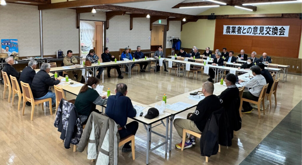 令和8年2月、農業者との意見交換会(主催 飯舘村農業委員会/共催 飯舘村)が開催され、飯舘村内にて農地中間管理事業を活用された担い手の方々集積担い手の事業者の方々がお集まりになりました。