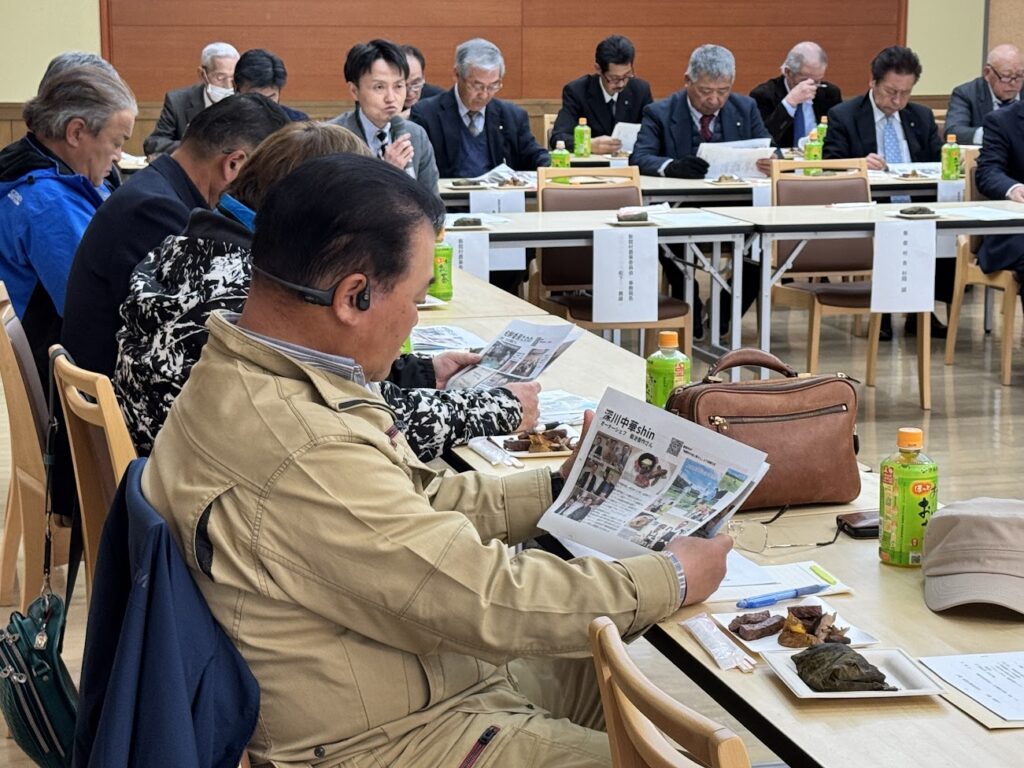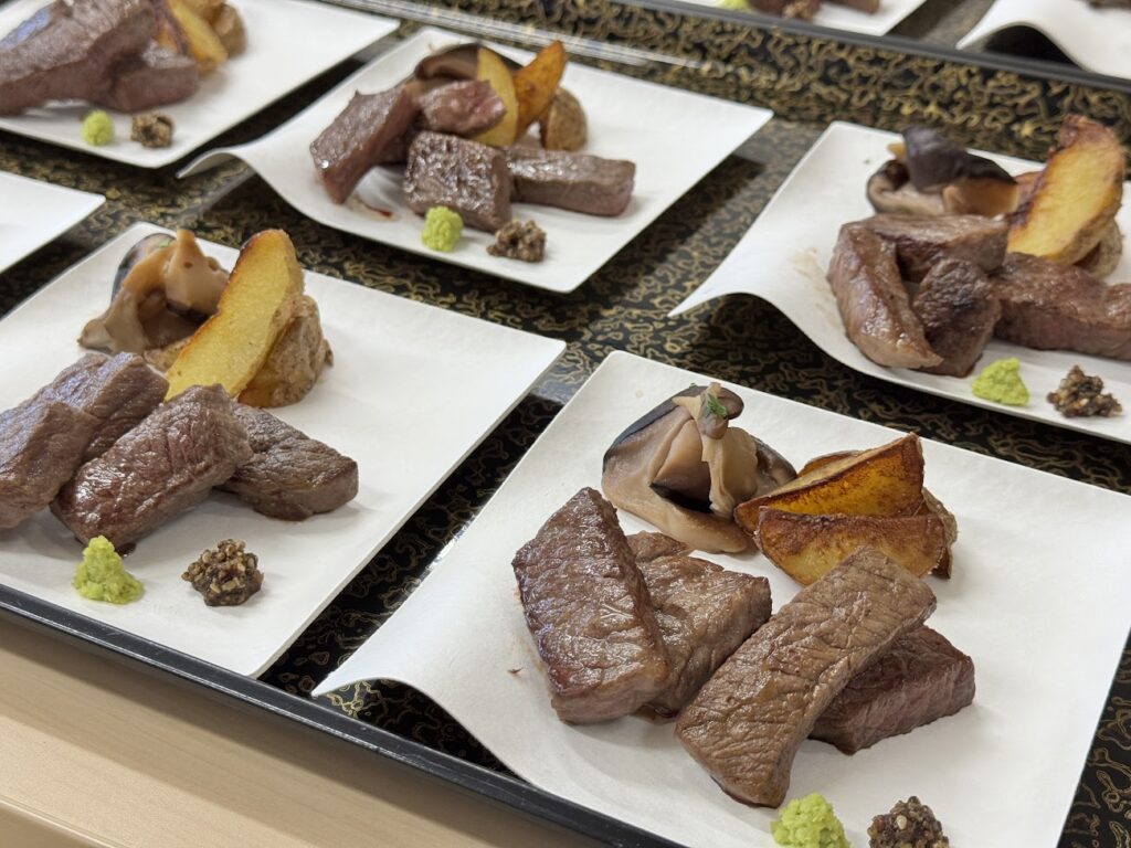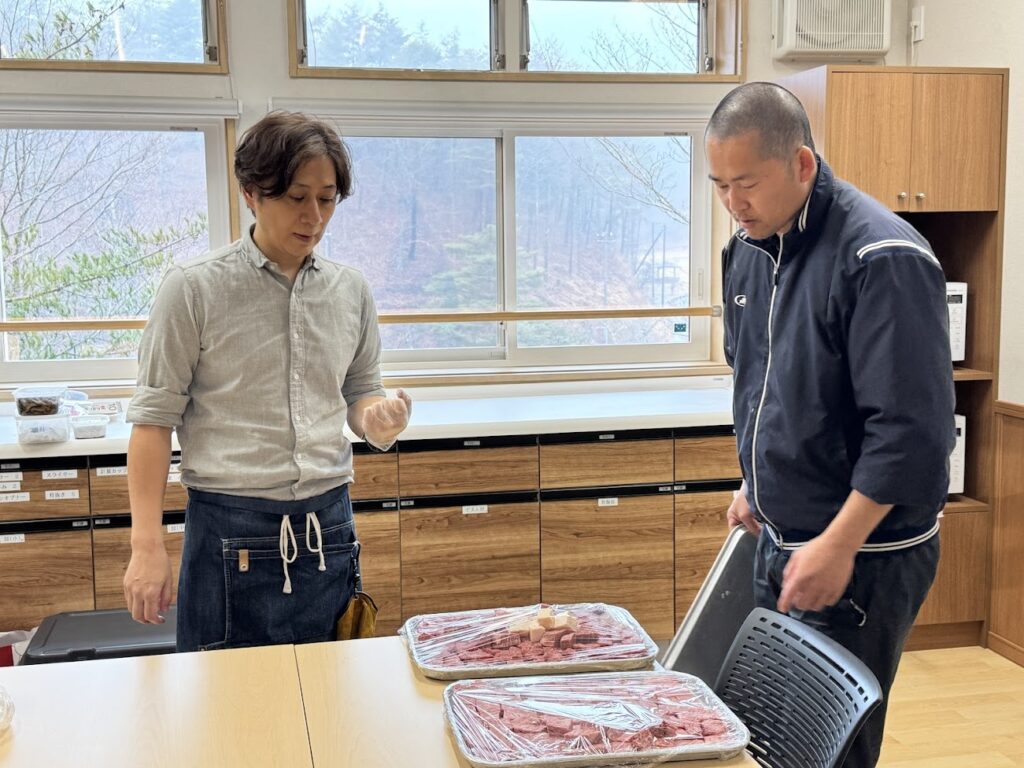 令和4年に2回、令和5年に1回と意見交換会を積み重ねてきており、今回の開催までに少し時間が空きましたが、改めて、「現状把握と今後に向けた情報共有の機会になるように」と、イントロダクションとして、村産品を使用したメニューや開発品の試食が行われました。