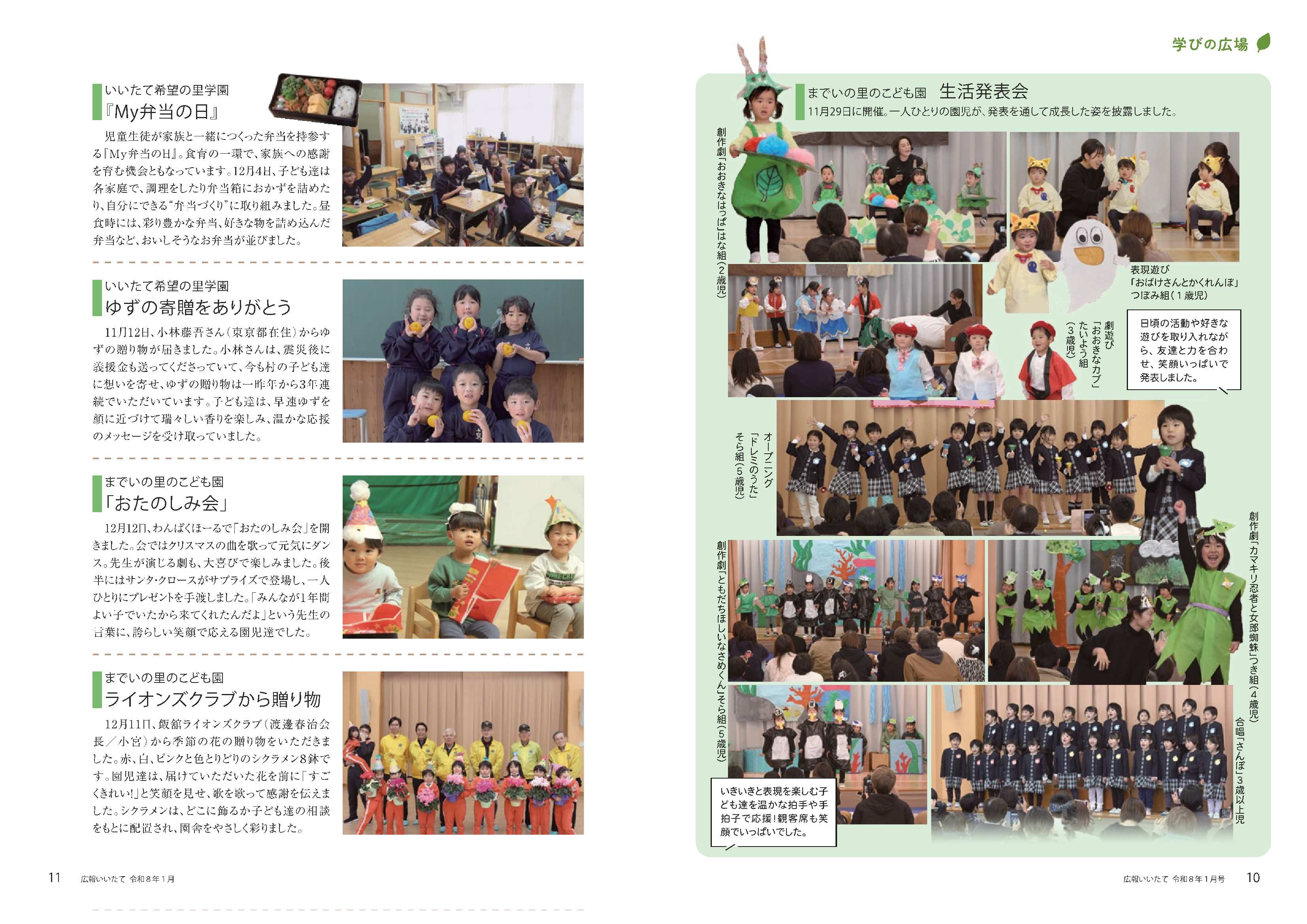 10~11ページ 学びの広場「こども園生活発表会」ほか