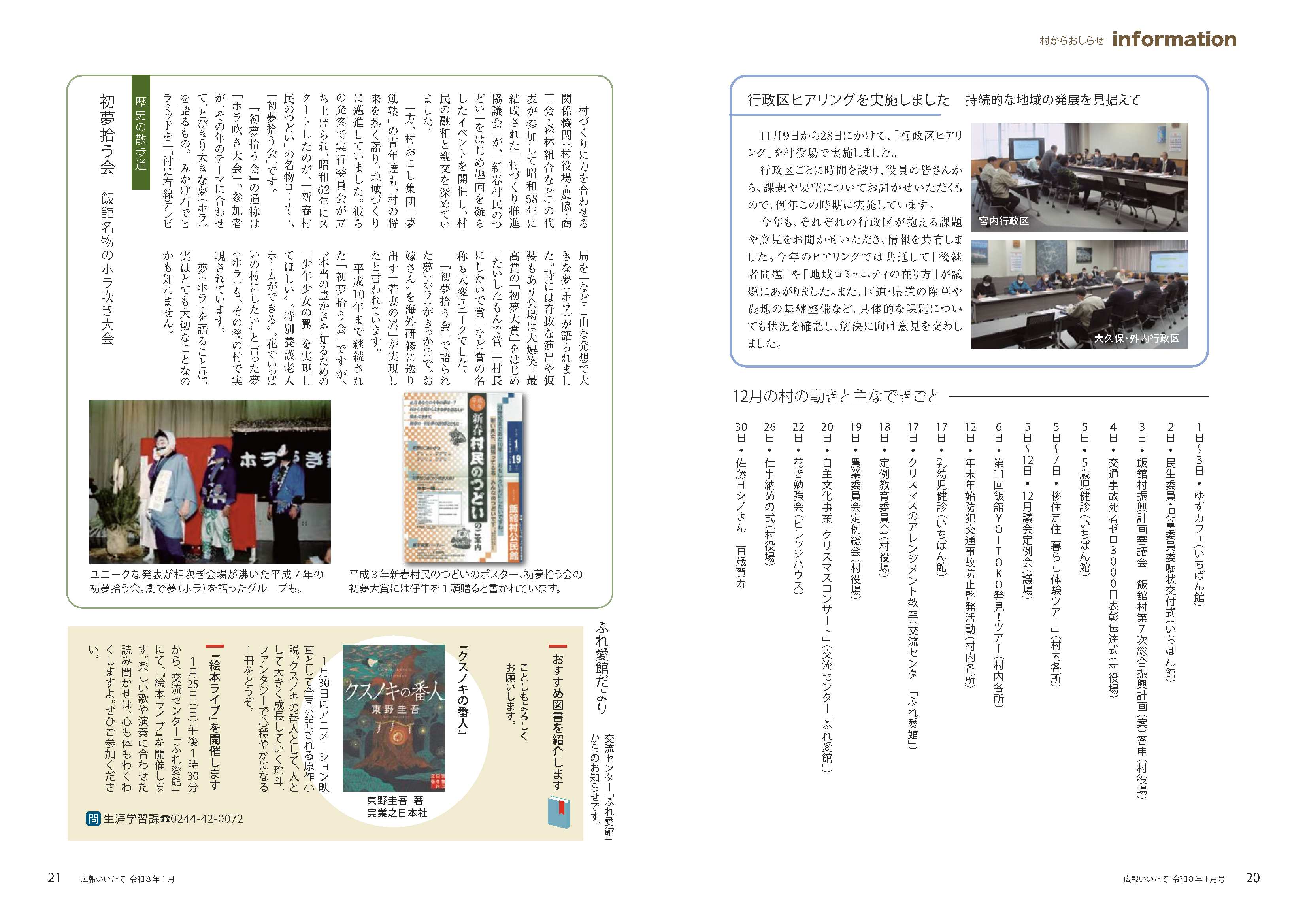 20~21ページ 村からおしらせ/歴史の散歩道/ふれ愛館だより